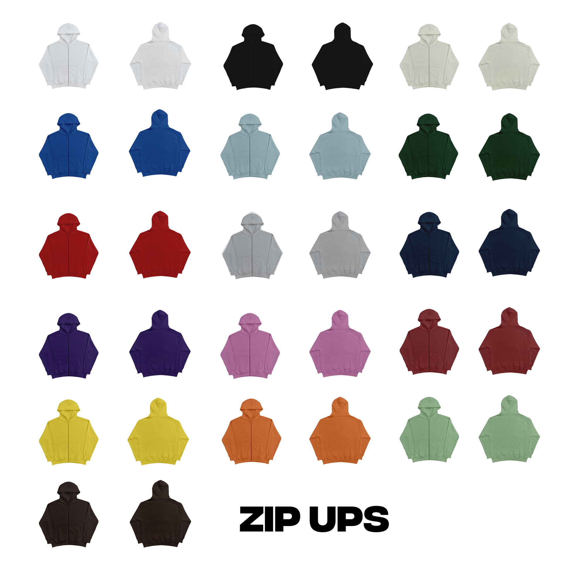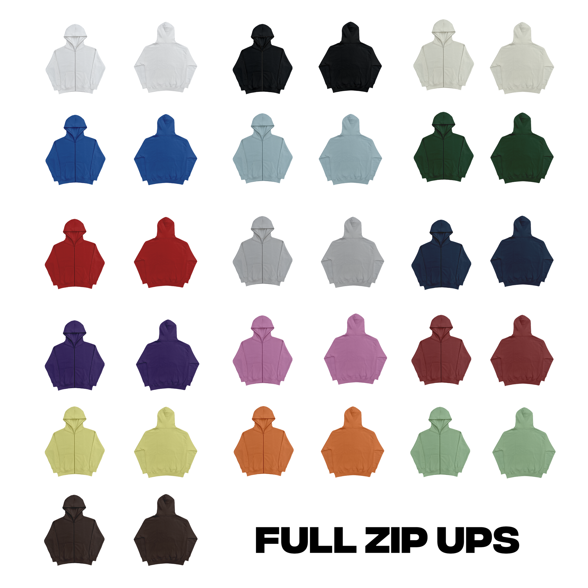 Zip Ups, Hoodies, Shirts, Shorts, Pants, Full Zip Ups, Sweaters and